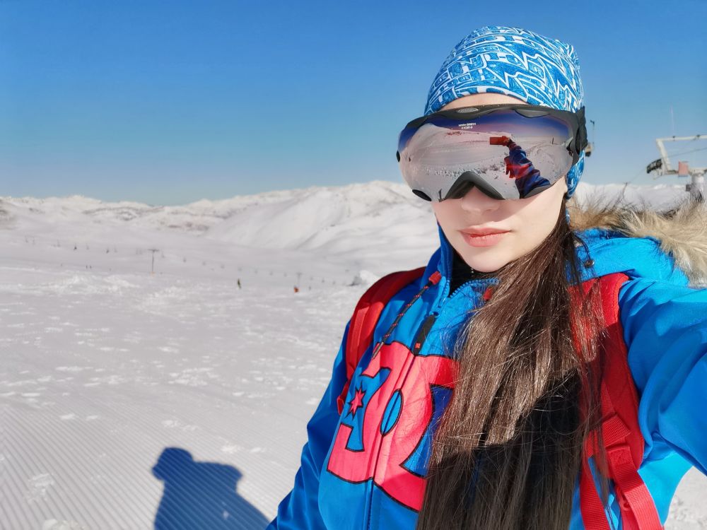 孟雅琪在伊朗Tochal滑雪场滑雪。(孟雅琪供图)