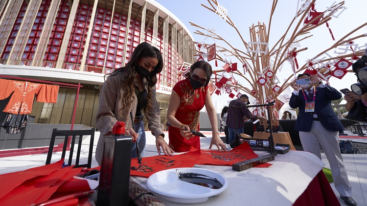 人民网迪拜2月1日电 (记者周輖、沈小晓)春节期间,由中国国务院新闻办公室、中国国际贸易促进委员会主办的“感知中国——走进迪拜世博会”活动在迪拜世博会中国馆亮相,汉服展演、音乐快闪、春联派送、“大象旅行团”“熊猫慢直播”等陆续登场,为迪拜世博会带来浓浓的中国年味儿。