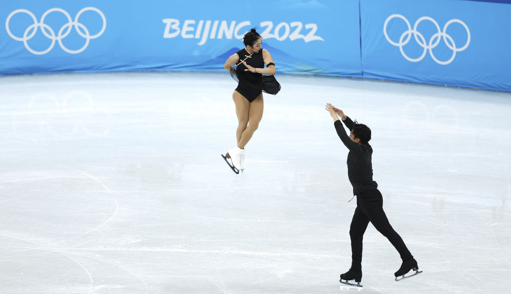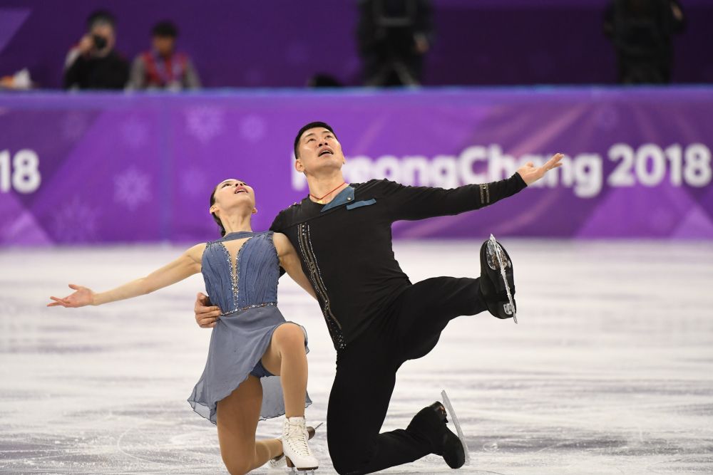 2018年2月15日,中国选手于小雨/张昊(右)在平昌冬奥会花样滑冰双人滑自由滑比赛中。新华社记者王松摄