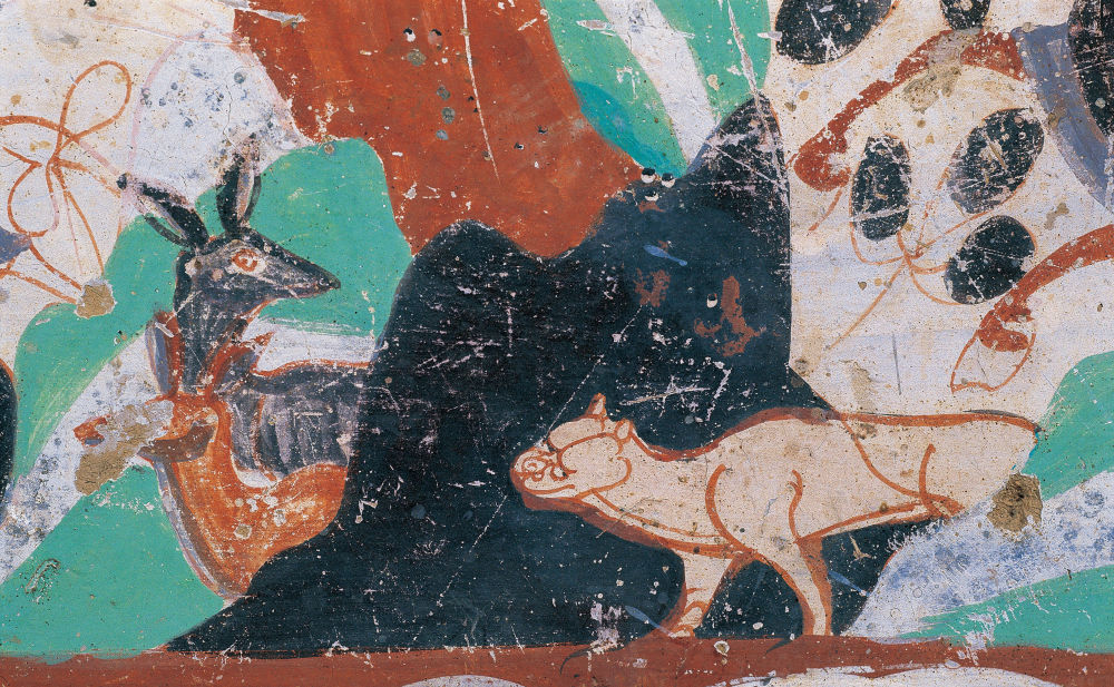 莫高窟第296窟的虎与鹿(敦煌研究院供图)