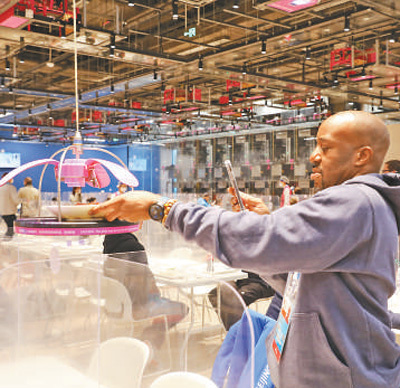 2月3日,一名外国记者在北京冬奥会主媒体中心智慧餐厅取餐。 本报记者 陈尚文摄 |