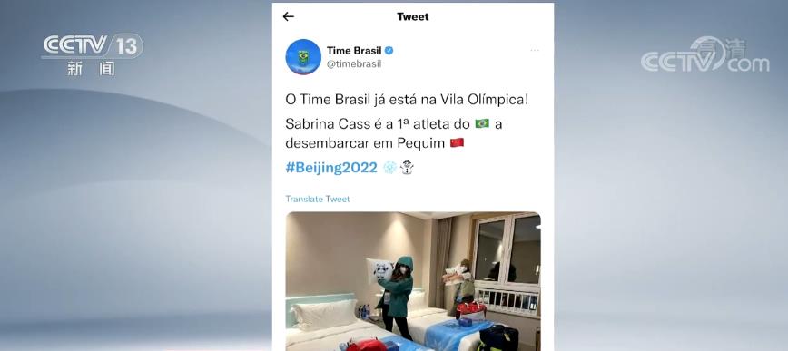 巴西队在其社交媒体官方账号上发布了一组运动员们来到冬奥村后第一时间拍摄的照片,运动员们进入房间后,行李还没打开,就与“冰墩墩”抱枕合影,自由式滑雪运动员萨布丽娜·卡斯还特意在雪地里与冬奥村里的一只大型“冰墩墩”合影留念。