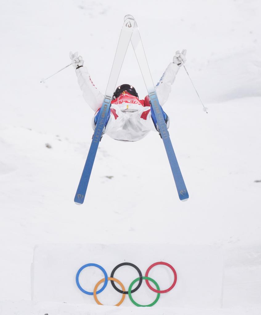 2月3日,加拿大选手米卡埃尔·金斯伯里在北京冬奥会自由式滑雪男子雪上技巧资格赛第1轮比赛中。新华社记者胡虎虎摄