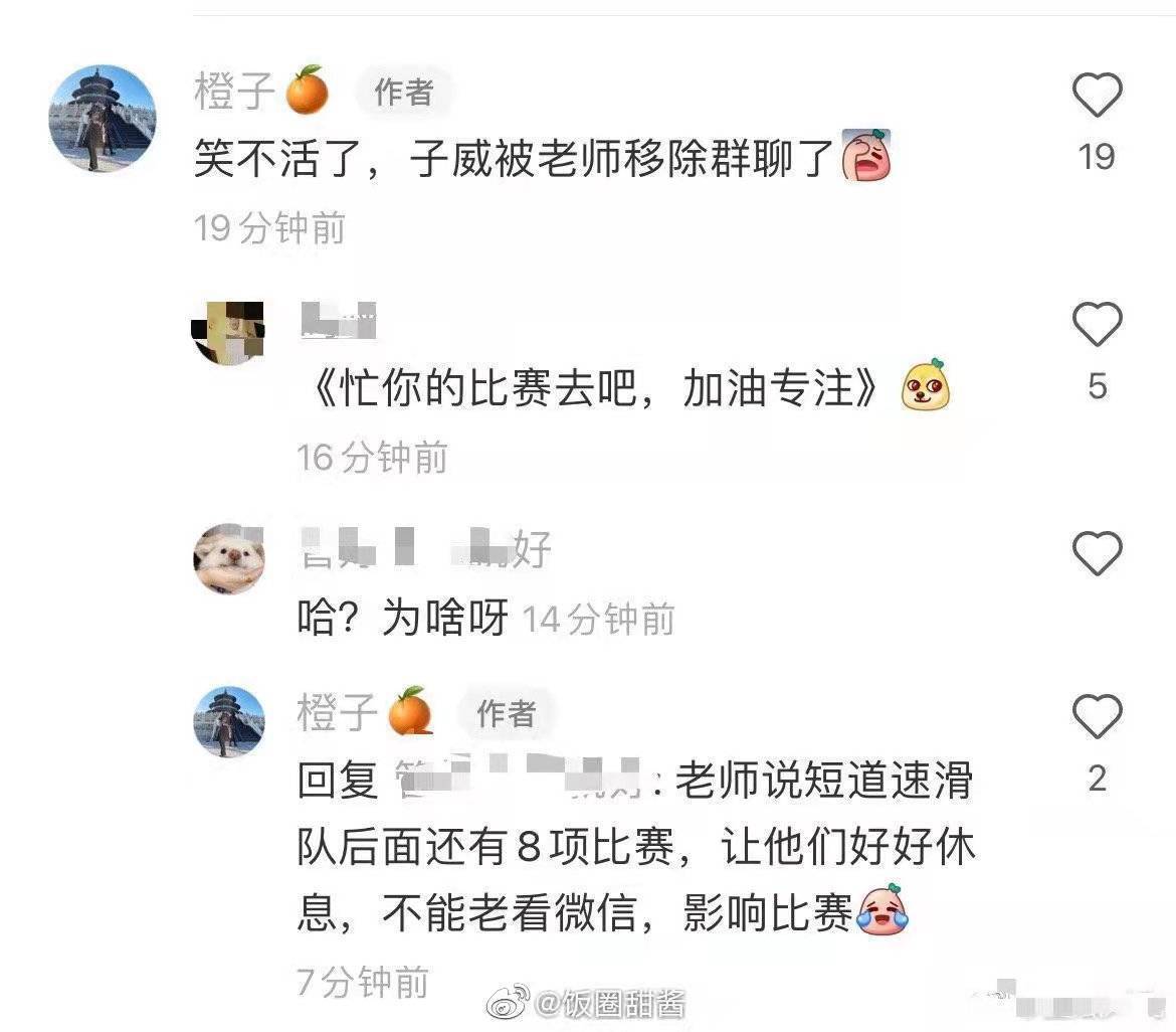 随后他被老师移出了群聊,据了解,该任课老师知道他后面还有很多比赛,让他别担心作业的事,他少看微信,好好休息,专注比赛。
