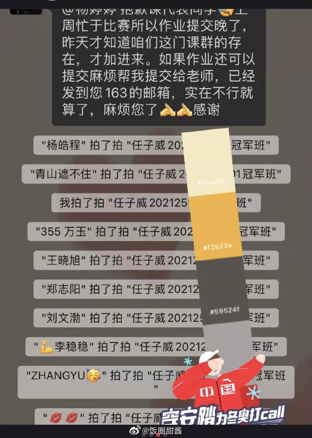 同学们纷纷表示:“我竟和奥运冠军在同一个微信群!”“任子威这人能处,想起有作业他是真的能补!”“《冠军也是要交作业的》”
