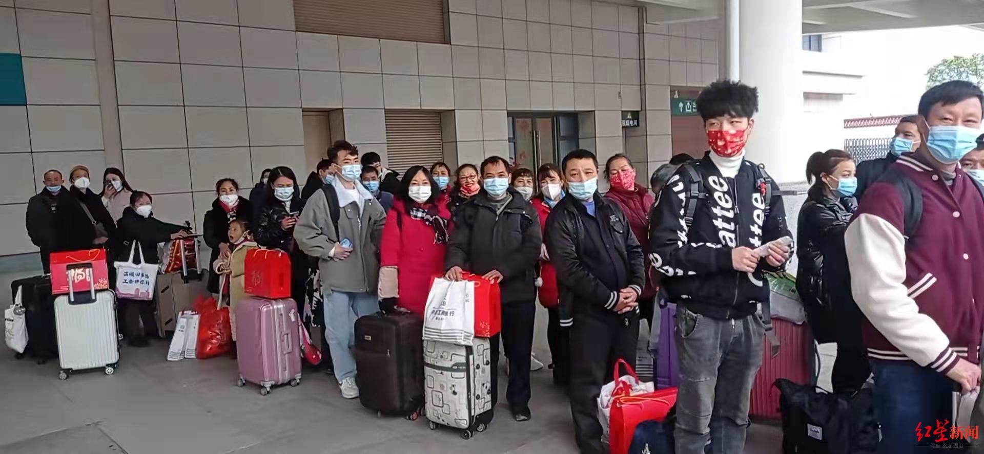 2月7日,大年初七早上9时18分,由眉山东站开往深圳的高铁列车载着33名东坡籍农民工驶出车站,这是今年眉山市首班发车的“点对点、一站式”农民工返岗专车。