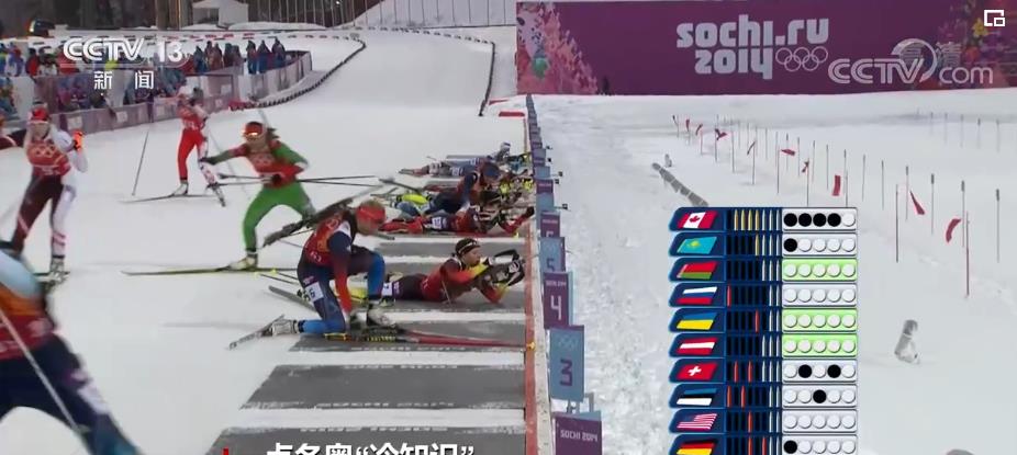 您可别搞混了,和北欧两项名字犹如孪生兄弟的冬季两项可是不同的比赛。它包含了越野滑雪和射击,两者交替进行。选手们身背步枪,每滑行一段距离就来到靶场射击。能快速平复呼吸和心率,切换到“心如止水”状态,争取一击命中,可不是看上去那么简单。而选手一旦脱靶,不是要被罚时间就是要加距离。