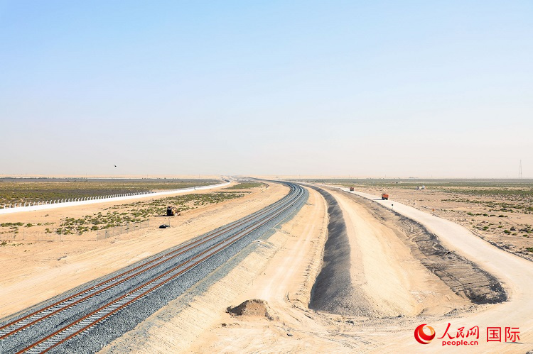 位于阿联酋阿布扎比酋长国的阿联酋二期铁路B标段DMB区段。人民网记者 沈小晓摄