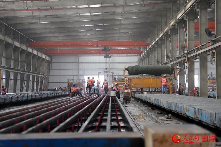 铺轨基地的轨枕生产车间。人民网记者 沈小晓摄