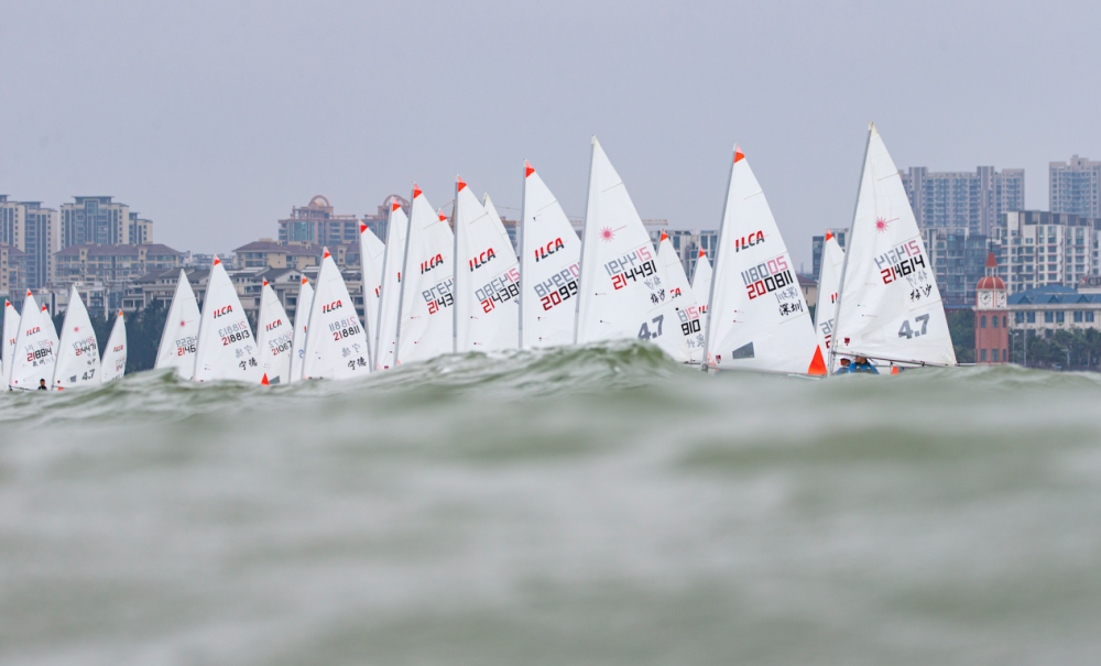 图为在海口举行的2022年全国激光4.7级帆船冠军赛