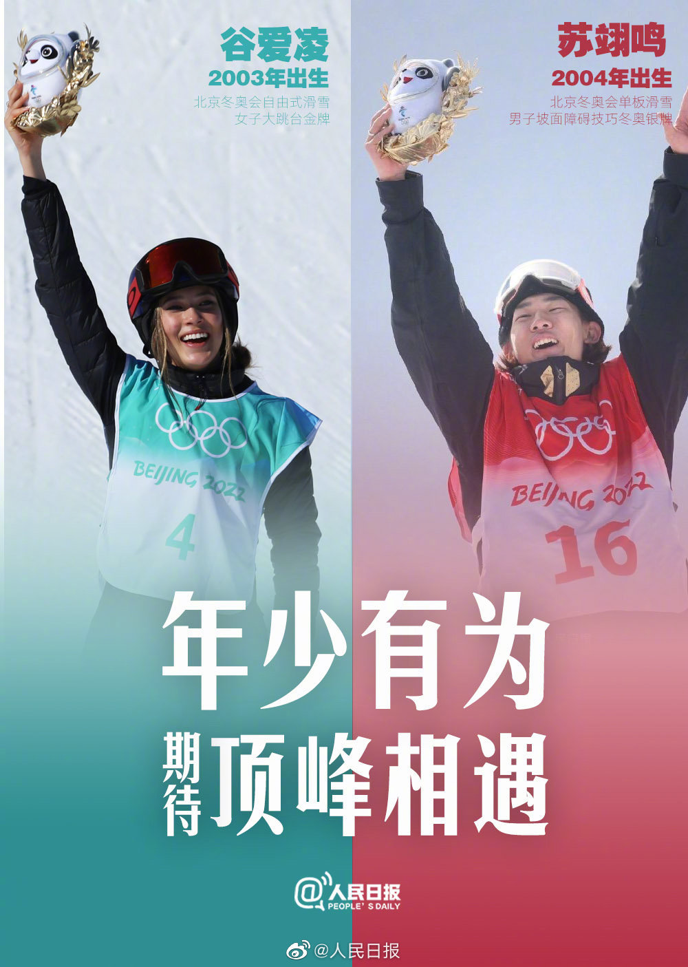 勇于挑战自我,用拼搏去打破曾经的“不可能”。他们的这份自信洒脱,也在激励更多青少年去面对挑战。“我想让她们感觉,‘如果她能做到,那我也能做’。”谷爱凌赛后这样说。