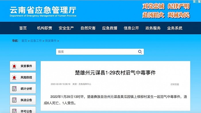 云南元谋县发生一起沼气中毒事件,致6死1伤