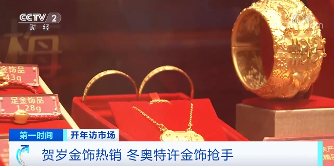 在北京一家黄金商场记者看到,虽然是早上刚开始营业,但这里已经聚集了不少的消费者,他们有的是为自己添置新年金饰,有的是为家人选购礼物。