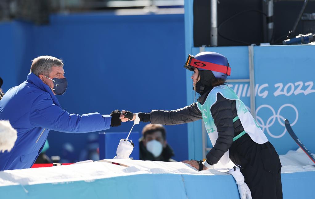 在自由式滑雪女子大跳台项目决赛中,国际奥委会主席巴赫也到场观赛。谷爱凌夺冠后,巴赫亲自送上祝贺。“谷爱凌是令人赞叹的,其他两位获得奖牌的运动员也是。这是一场惊险刺激、让人难以呼吸的比赛。”