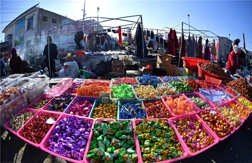 1月17日,村民在宁夏银川市贺兰县金贵集市上选购年货。新华社发(李靖 摄)