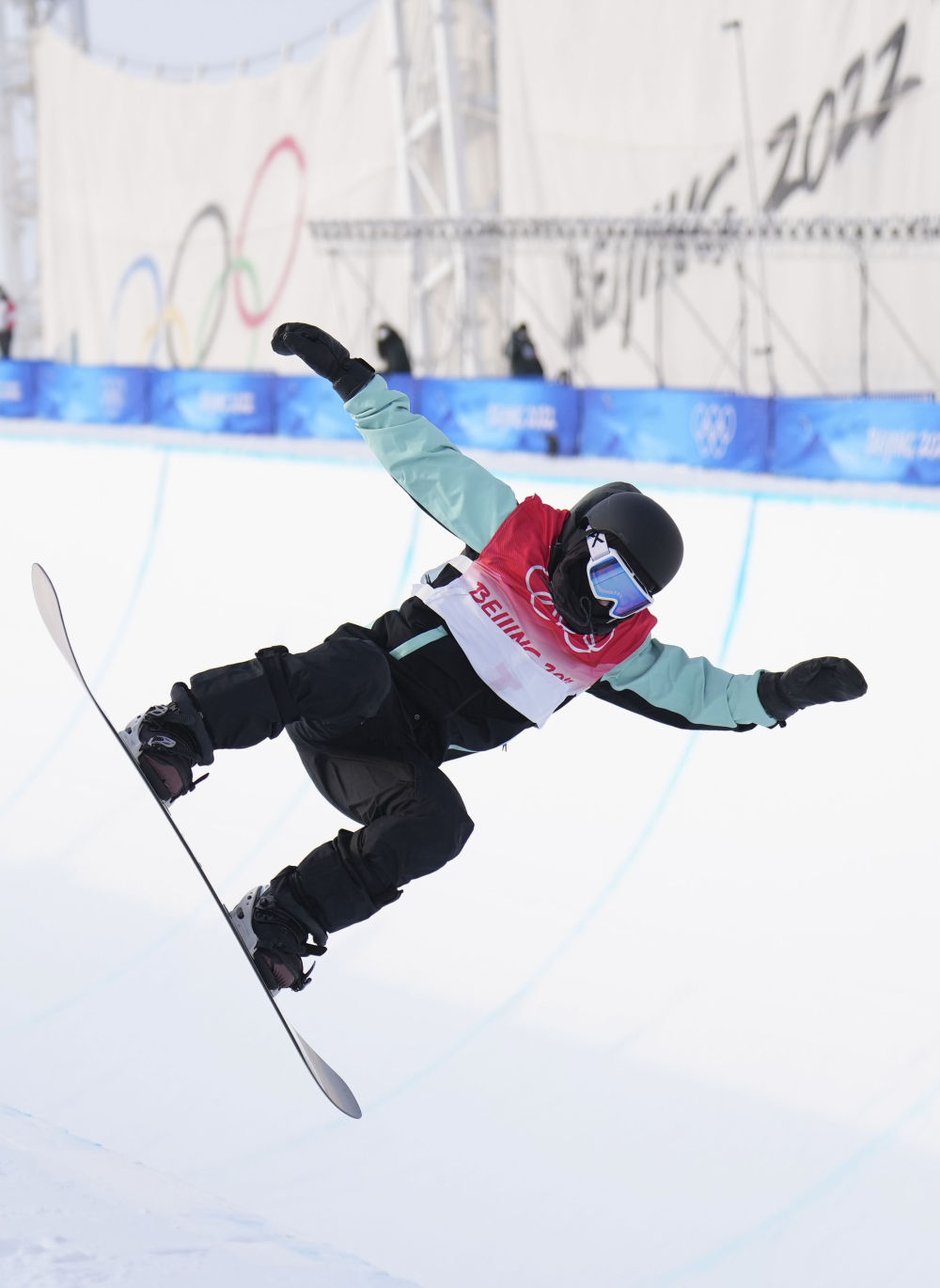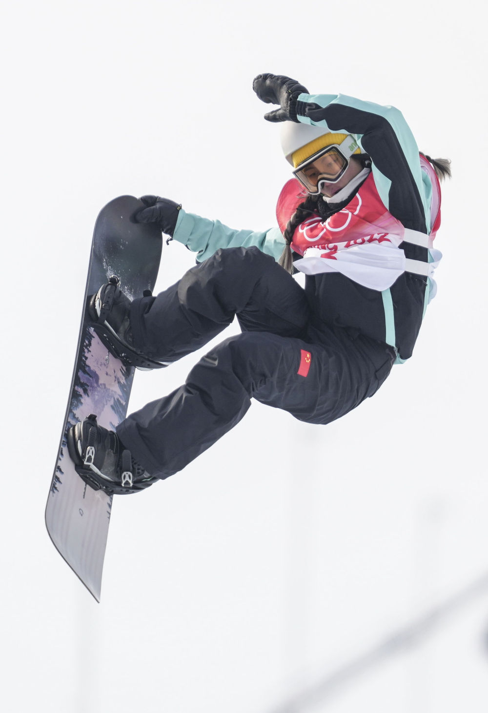 2月9日,中国选手蔡雪桐在北京2022年冬奥会单板滑雪女子U型场地技巧比赛中。新华社记者牟宇摄