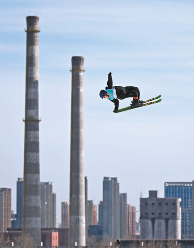 2月7日,俄罗斯奥委会选手阿纳斯塔西娅·塔塔利娜在比赛中。当日,自由式滑雪女子大跳台资格赛在首钢滑雪大跳台进行。新华社记者 李 尕摄