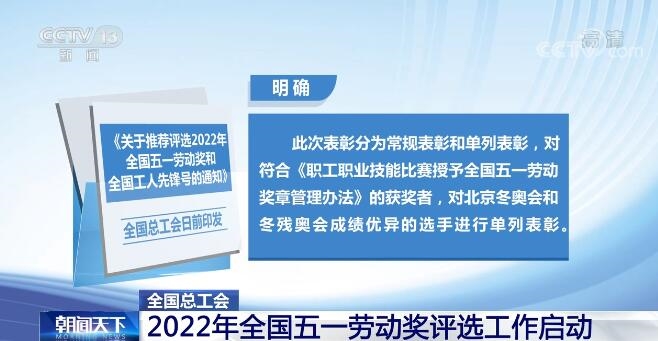 此次表彰分为常规表彰和单列表彰,对符合《职工职业技能比赛授予全国五一劳动奖章管理办法》的获奖者,对北京冬奥会和冬残奥会成绩优异的选手进行单列表彰。对在国家重点工程建设、重大科研项目研制等方面作出突出贡献或其他符合即时表彰条件的,在本年或次年“五一”进行单列表彰。