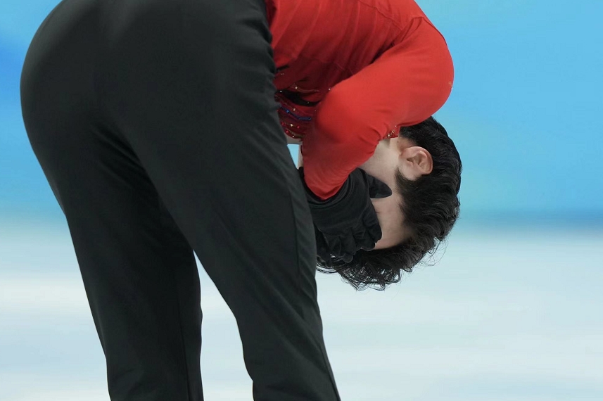 他开场的勾手四周完成得非常好,稳稳地落在冰面上。整套动作中,他设计了非常多的连跳动作,后外点冰四周加后外点冰两周也完成得很好,整个空中姿态控制得也很优美。在他比赛的过程中,全场也合着节拍响起了掌声。最终,他得到了179.45分,再次创造了自己的赛季最佳成绩。