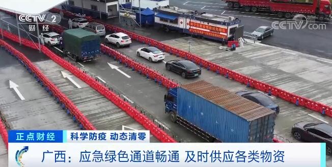 央视网消息:在严格的防控举措下,广西疫情防控指挥部为防疫、生活物资保障车辆开辟绿色通道,保障各类物资顺利进入百色。