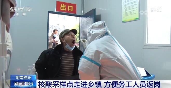 返程复工高峰到来,不少群众需携核酸检测报告复工。为方便务工人员核酸检测,湖南桂阳在城区及各乡镇设立了24个核酸采样点。