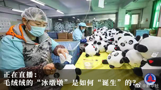 #探访冰墩墩生产线#【正在直播:#毛绒绒的冰墩墩是如何诞生的#?】北京冬奥会吉祥物“冰墩墩”近日备受关注。位于民营经济重镇福建晋江的晋江恒盛玩具有限公司是北京冬奥会特许商品生产商之一,这里生产的“冰墩墩”由硅胶外壳和毛绒熊猫公仔两部分组装而成。现在,跟随#新华社直播#一起去“冰墩墩”生产线看看吧! 新华社的微博直播