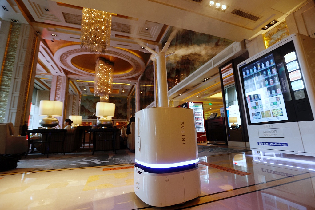 记者直在9日的一篇文章中提到,除餐厅外,高科技应用在北京冬奥会防疫工作中也很常见。他举例说,“有机器人一边在酒店的走廊里喷射消毒液,一边来回走动,准备很周全”。