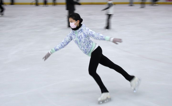 2月9日,一名年轻人在朝阳大悦城的冰雪运动馆滑冰。新华社记者 李欣 摄