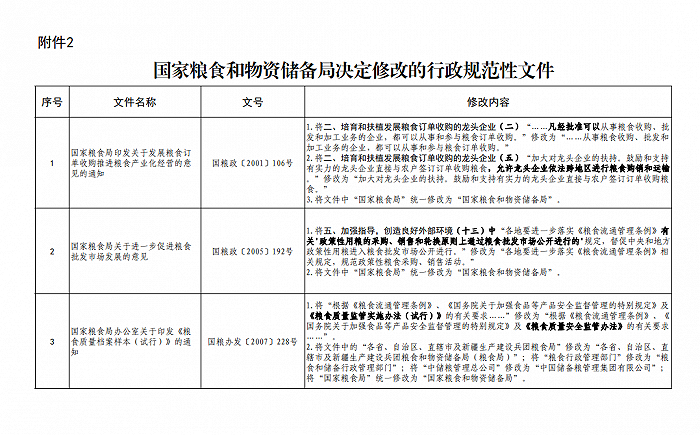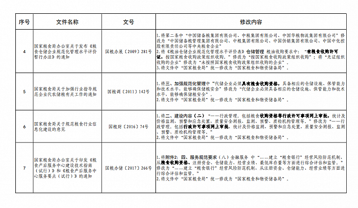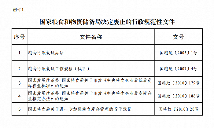 2月10日消息,国家粮食和物资储备局近日发布2022年第1号公告称,为贯彻落实党中央、国务院关于深化“放管服”改革的有关精神,根据《粮食流通管理条例》(国务院令第740号),结合行政规范性文件管理工作的要求,决定废止5件行政规范性文件、修改7件行政规范性文件。