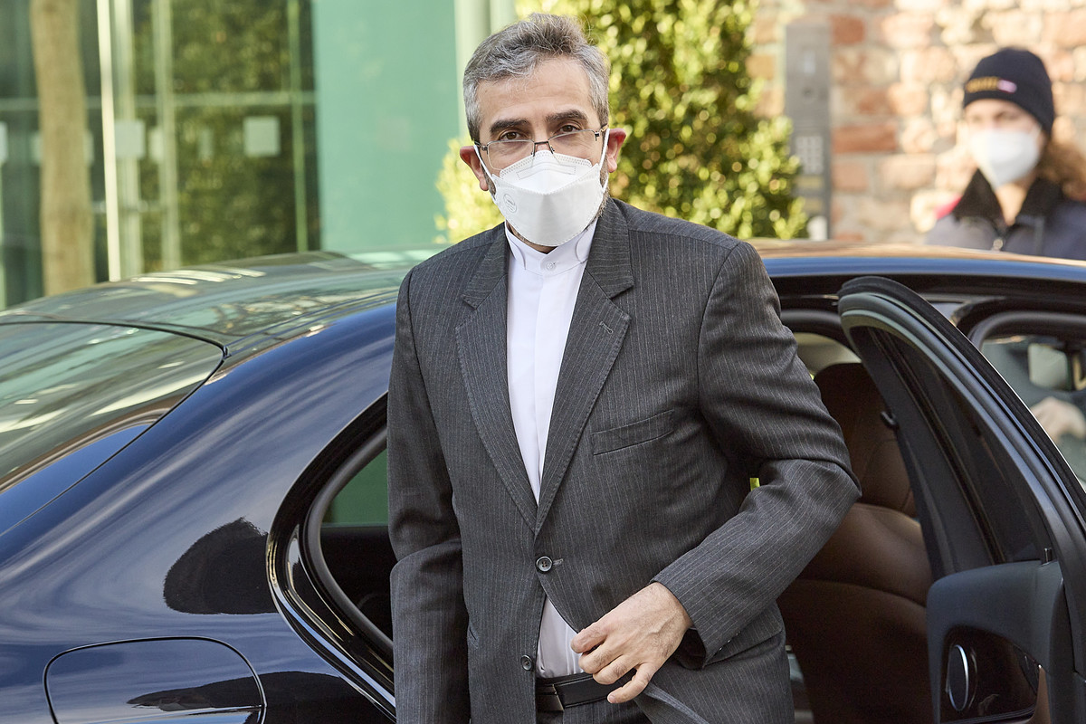 2月8日,在奥地利维也纳,伊朗副外长巴盖里准备进入谈判会场。(新华社发,乔治斯·施耐德摄)