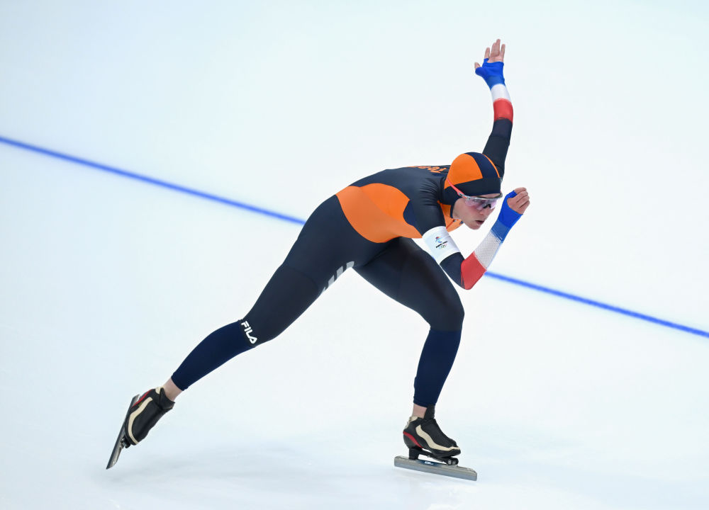2月10日,荷兰选手伊雷妮·斯豪滕在北京冬奥会速度滑冰女子5000米比赛中。新华社记者武巍摄