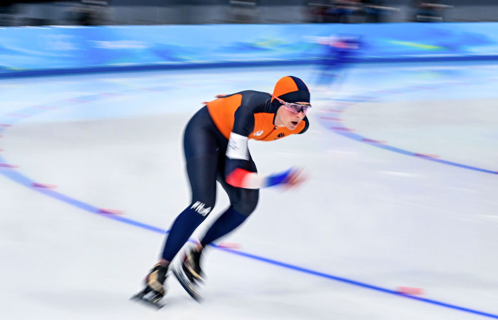 2月10日,荷兰选手伊雷妮·斯豪滕在北京2022年冬奥会速度滑冰女子5000米比赛中。新华社记者王菲摄