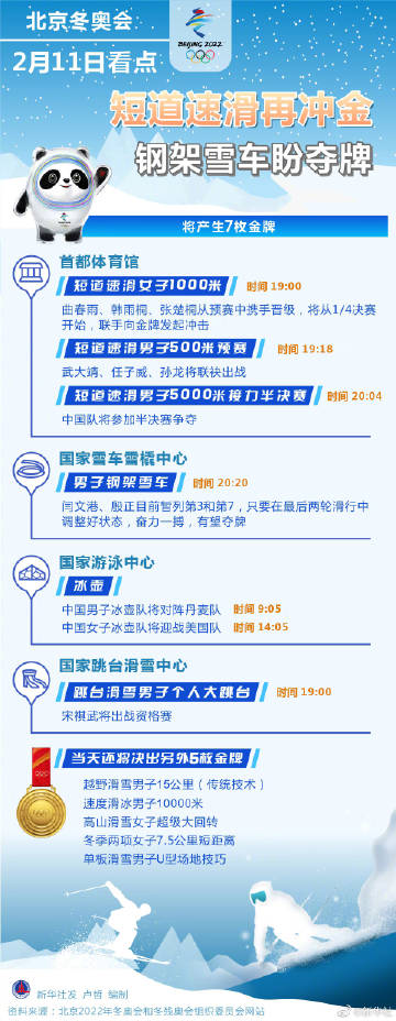 #北京冬奥会11日看点#【#短道速滑再次冲金# 钢架雪车盼夺牌】北京冬奥会11日将在7个项目中产生7枚金牌,中国军团有望在两个项目上争夺奖牌,分别是短道速滑女子1000米和男子钢架雪车。