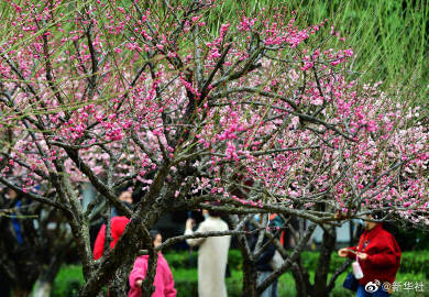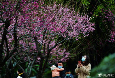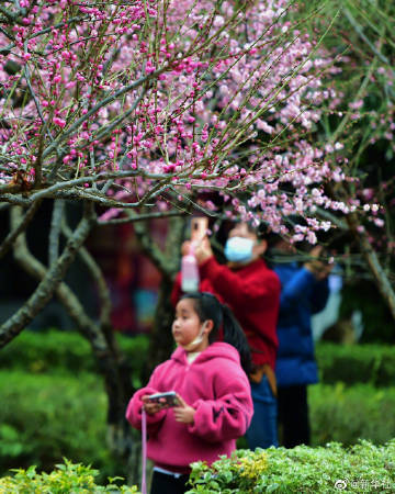 【“梅”不胜收 #赏春正当时#】位于福建省福州西湖公园里的数十株梅花近日竞相绽放,玖红、雪白、淡粉......各色梅花挂满枝头,吸引众多游客徜徉其间,赏玩留影,成为一道靓丽的风景线。 (记者魏培全)