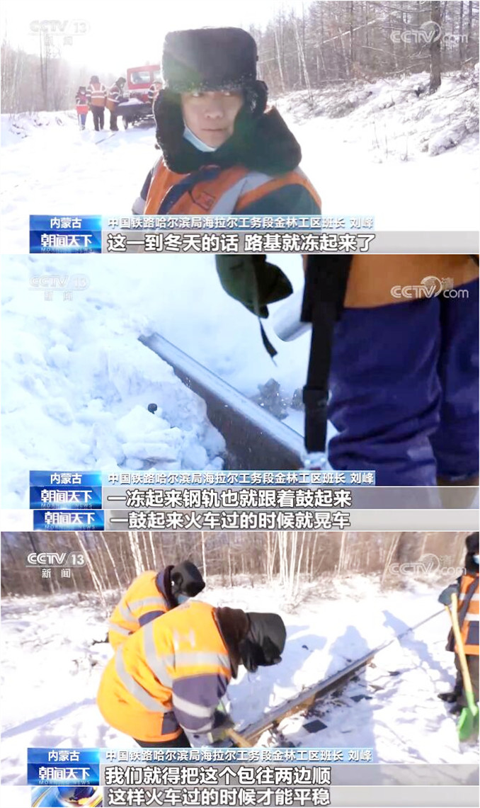 央视网消息:“中国冷极”位于内蒙古自治区根河市金河镇,年最低气温可达零下58摄氏度。这里有一条百年牙林铁路,是沿线百姓进出山区的唯一通道。在极寒天气下,中国铁路哈尔滨局集团有限公司的8名线路工每天都要在室外作业,保障铁路畅通。