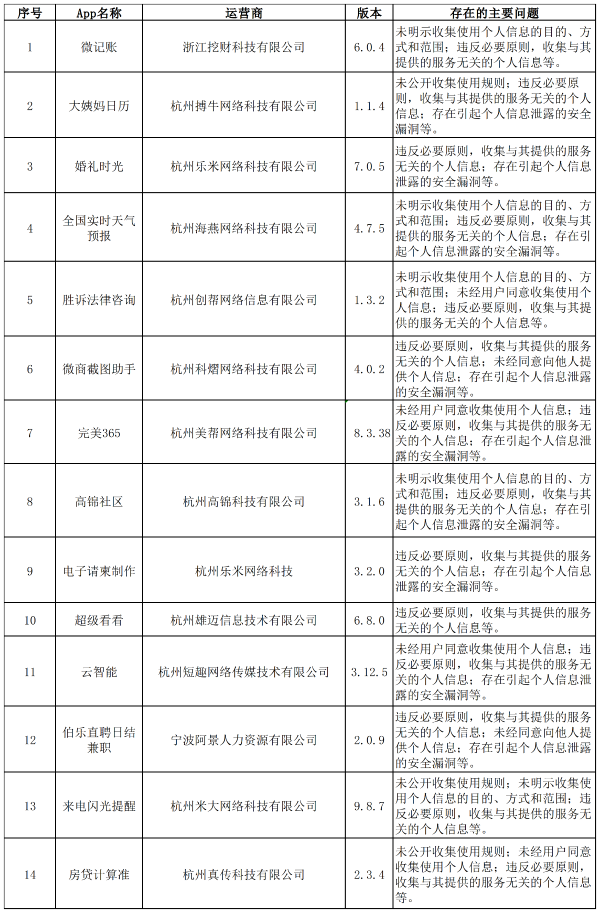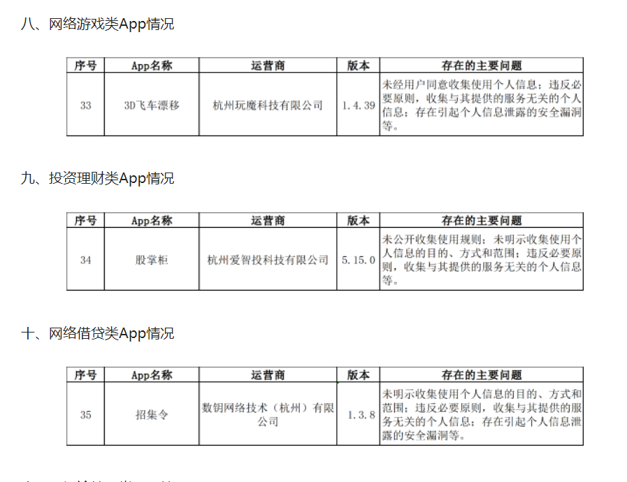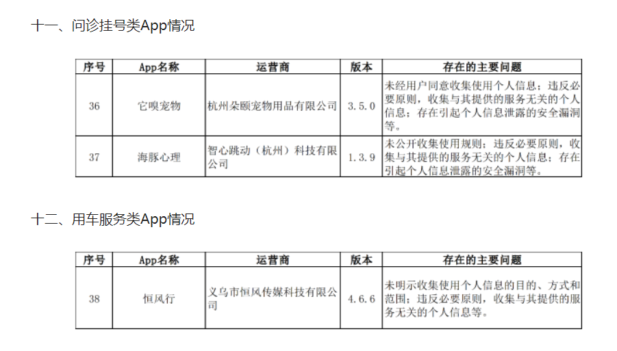 2月11日,浙江省App违法违规收集使用个人信息专项治理工作组通报38款App存在违法违规收集使用个人信息行为,要求10个工作日内完成整改。