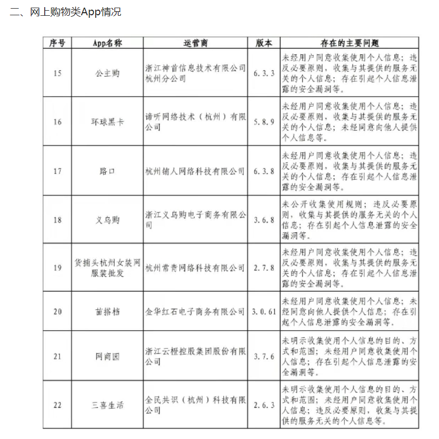 此前,工作组针对群众反映强烈的App非法获取、超范围收集、过度索权等侵害个人信息的现象,对常见类型且公众大量使用的100款App个人信息收集使用情况进行检测,并对存在问题的App进行点对点通报,责令违规App限期整改。