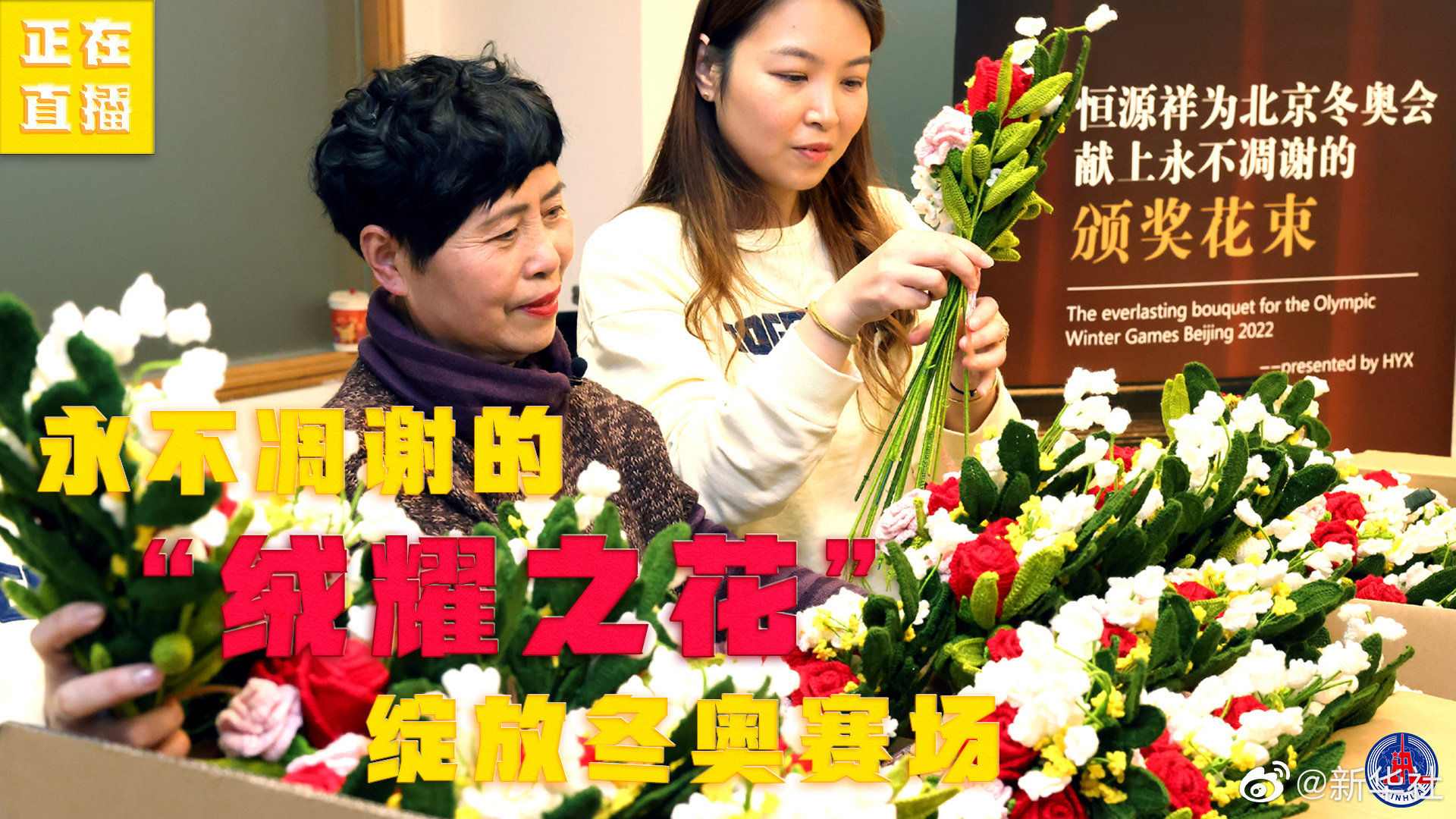 【正在直播:永不凋谢的“绒耀之花”绽放冬奥赛场】和传统的鲜花花束不同,这次#冬奥会的颁奖花束是永不凋谢的绒线花#,因此也被称为是“绒耀之花”。“绒耀之花”由非物质文化遗产“海派绒线编结技艺”上海市级代表性传承人、今年已经70岁的励美丽领衔制作。跟随#新华社直播#,一起见证“绒耀之花”的诞生。 新华社的微博直播