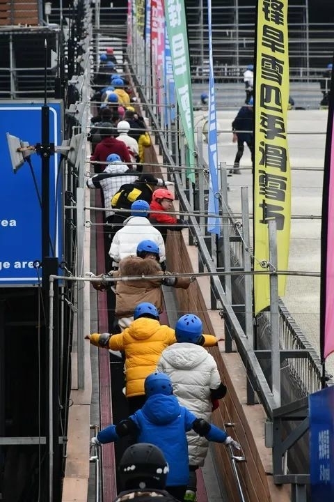 人们排队通过“上坡魔毯”。新华每日电讯记者谢佼摄