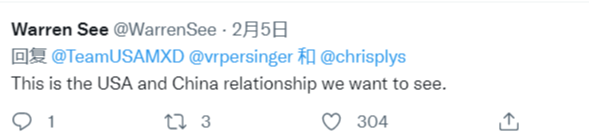 在中美关系紧张的大环境下,中美运动员“暖心”一幕令不少网友动容。海外网友在该条推文评论区纷纷留言。