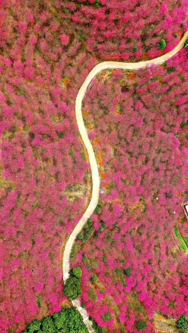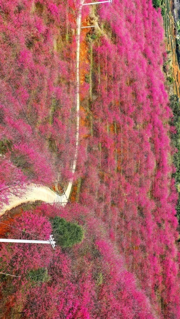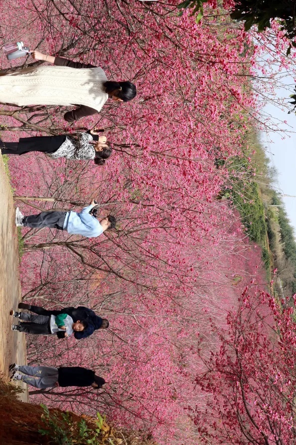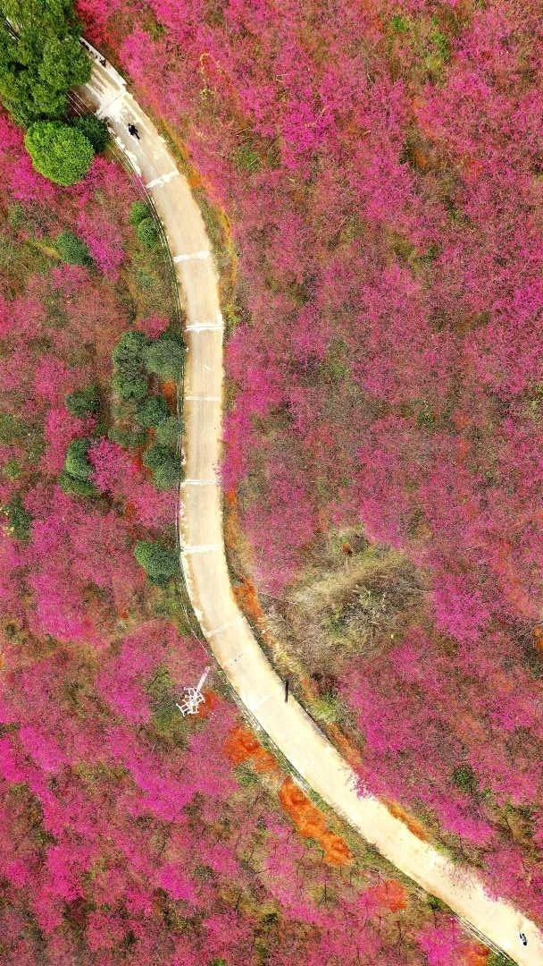 盈暖春期,正是樱花烂漫时。在福建省漳州市华安县华丰镇上雪新村黄竹垵山坡上,连片牡丹樱花树竞相开放,随着山坡蜿蜒,美不胜收,吸引众多游客前来打卡观赏、拍照留念。