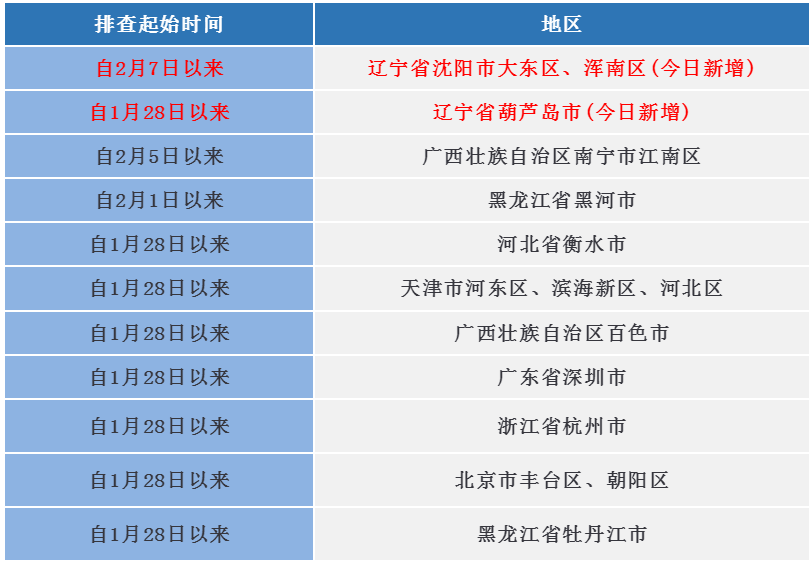 如果您近期有以下地区的旅居史,请第一时间向村(社区)、单位或入住酒店报备,配合做好各项疫情防控工作。