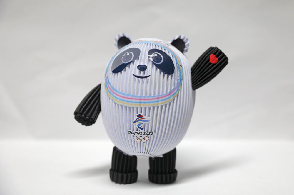 ↑这是2022年2月10日拍摄的掐纸作品“冰墩墩”,沈阳市非物质文化遗产“李氏掐纸”艺人李雪用自己的方式为冬奥“助力”。 新华社记者 杨青 摄