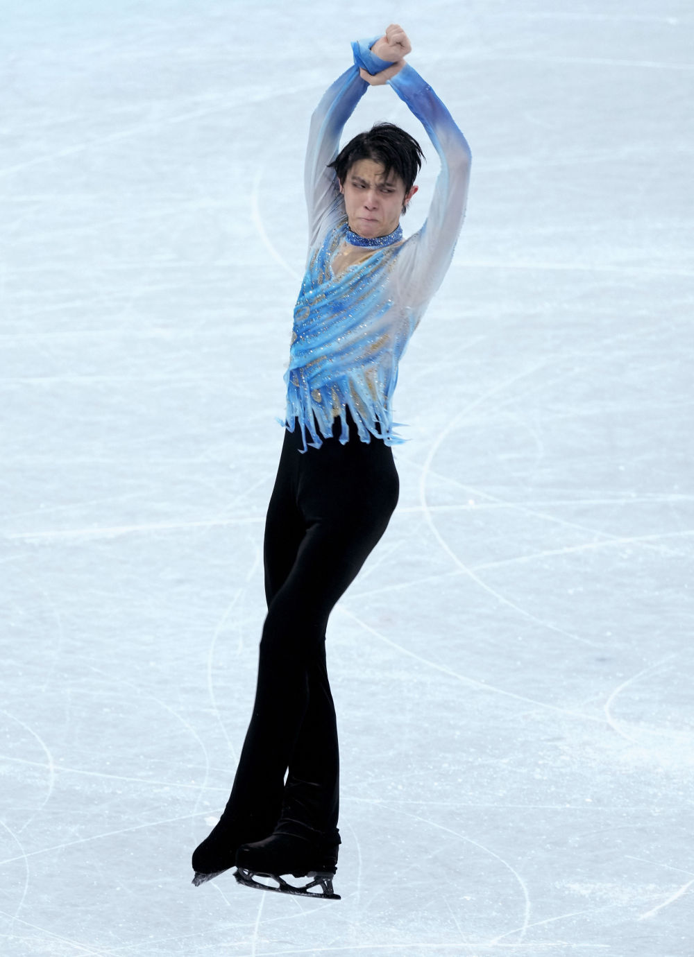 ↑2月10日,日本选手羽生结弦在花样滑冰男子单人滑自由滑比赛中。新华社记者 陈建力 摄