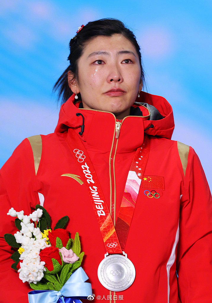 颁奖仪式上,徐梦桃在领奖台上流下了眼泪。四次征战冬奥,坚持不易,辛苦了!