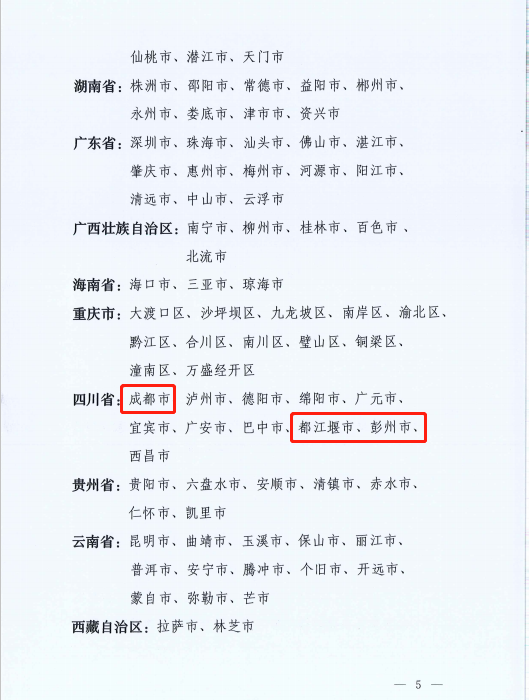 四川省成都市、都江堰市、彭州市被重新确认为国家卫生城市,成都市青城山镇被重新确认为国家卫生镇。