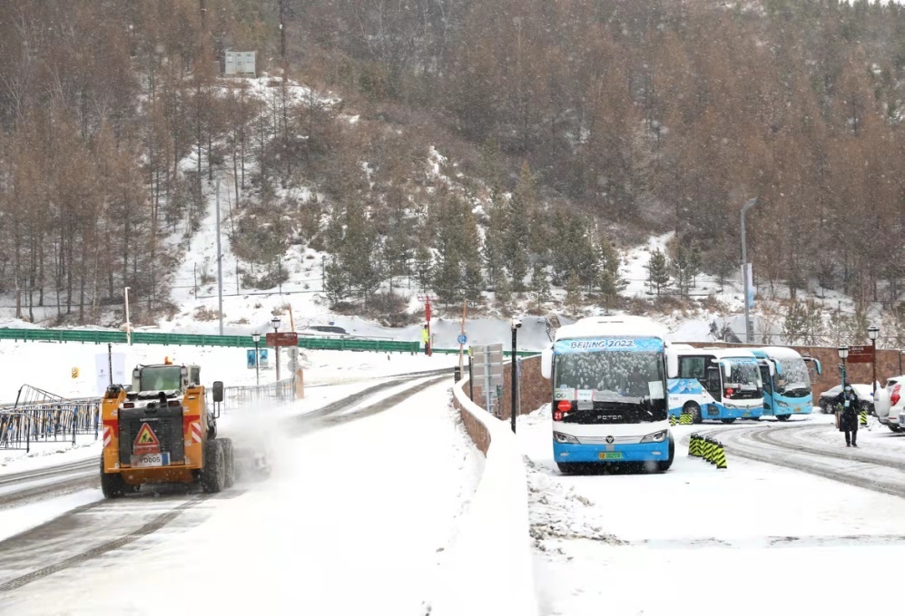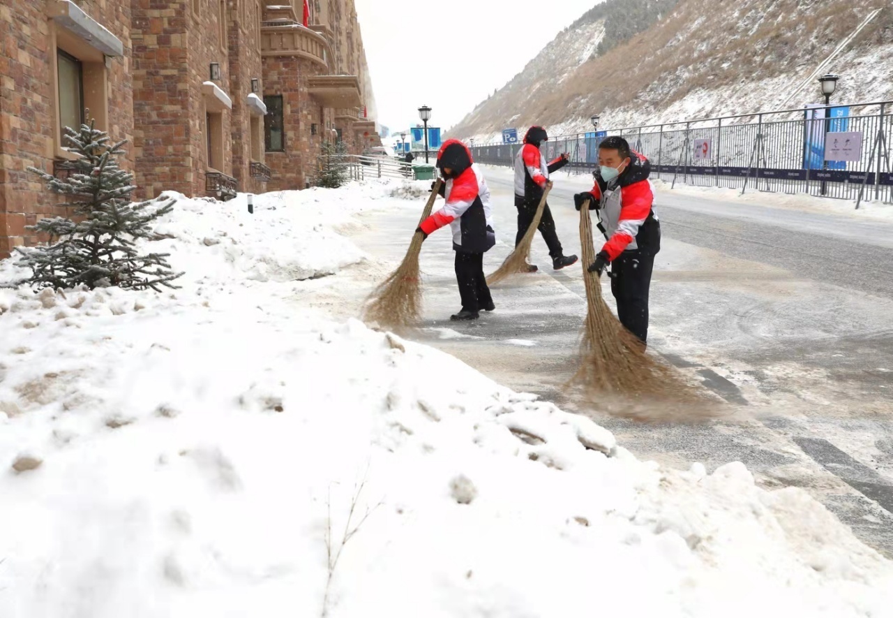 在2月11日下午召开的云顶场馆群场馆建设和赛事运行保障媒体吹风会上,云顶场馆群后勤副主任束文表示,有专业的铲冰除雪团队在下雪天“随下随清”,保障赛事运行。
