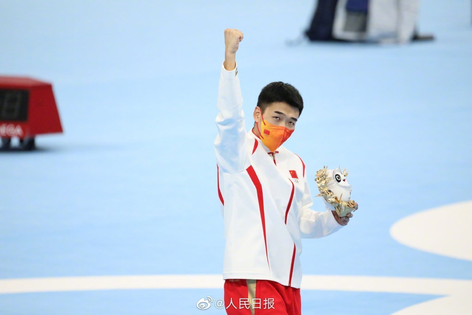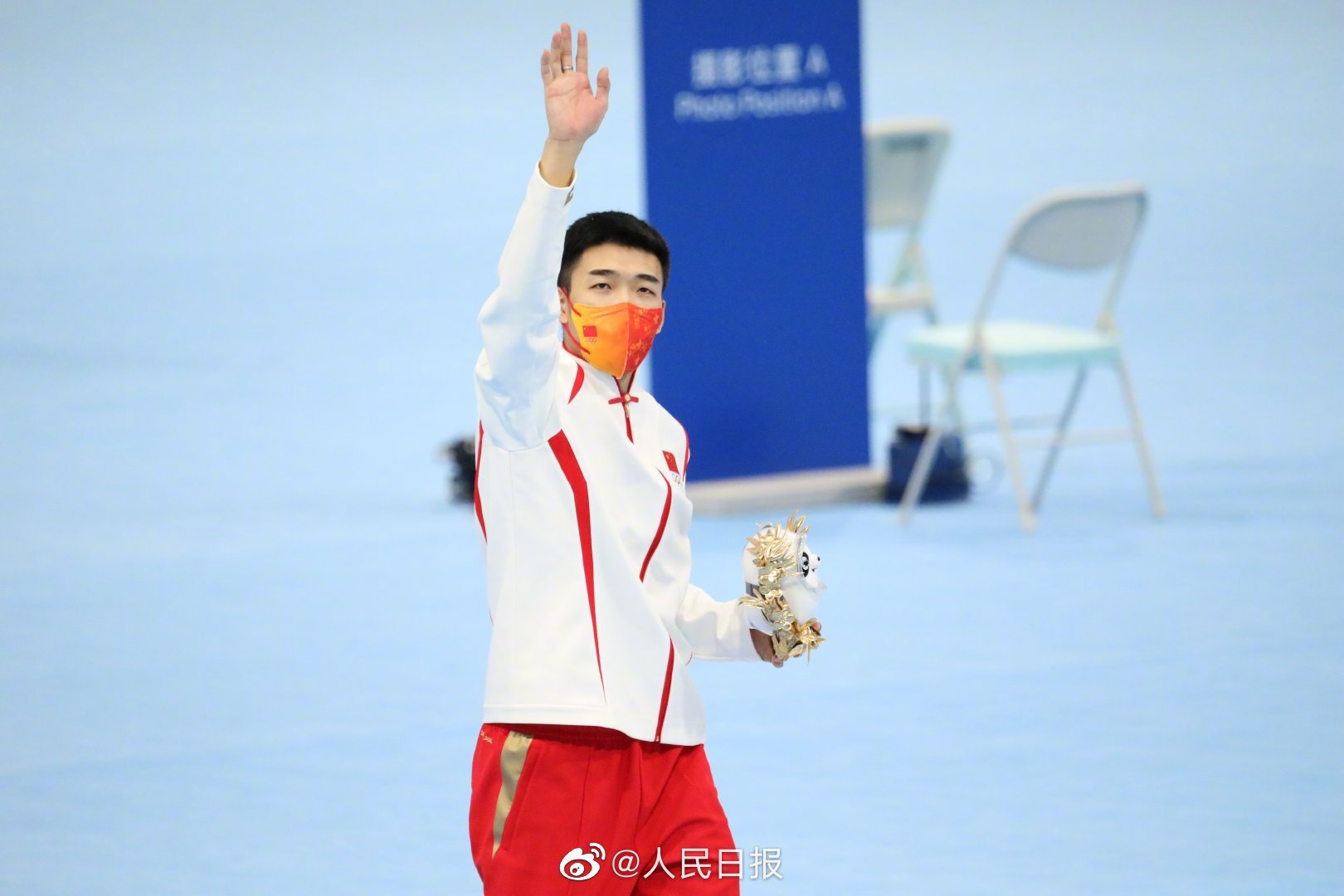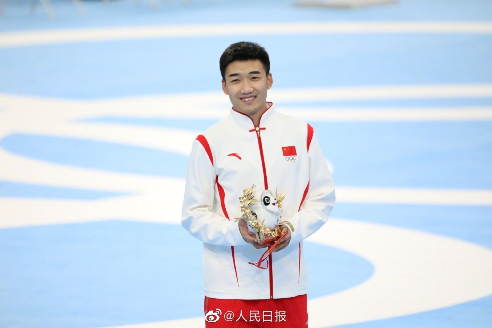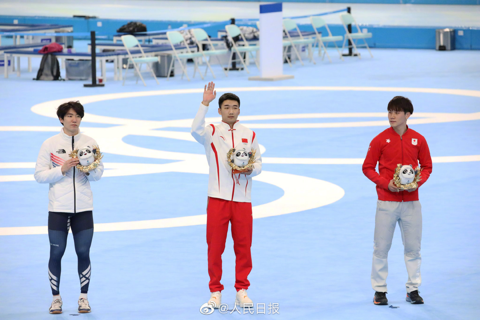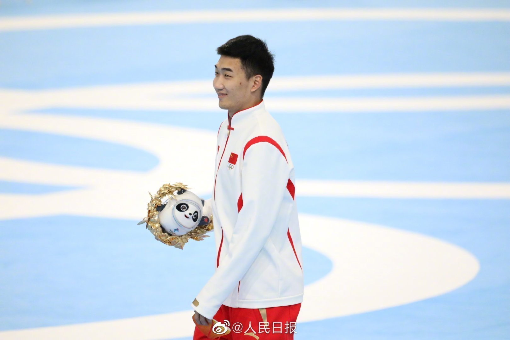 2月12日,在北京冬奥会速度滑冰男子500米比赛中,中国选手高亭宇夺冠。赛后颁发吉祥物,高亭宇领到了属于他的金墩墩。他手捧冰墩墩,向观众微笑示意。祝贺!