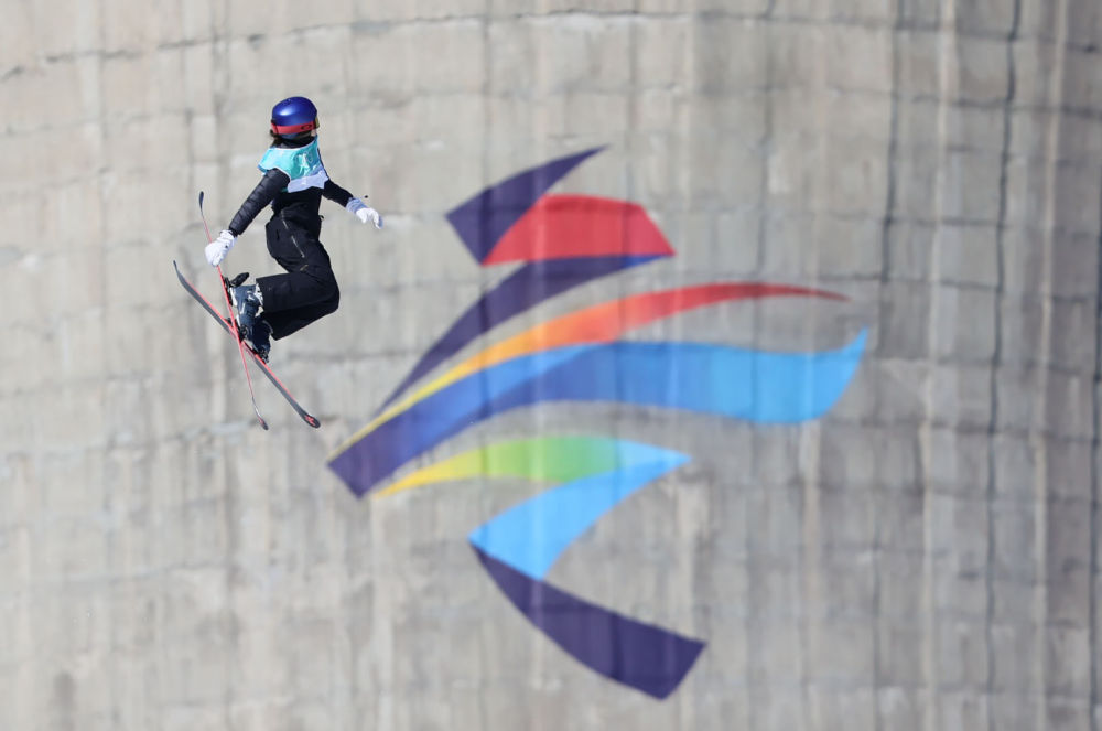 2月8日,中国选手谷爱凌在北京冬奥会自由式滑雪女子大跳台决赛中夺冠。新华社记者兰红光摄