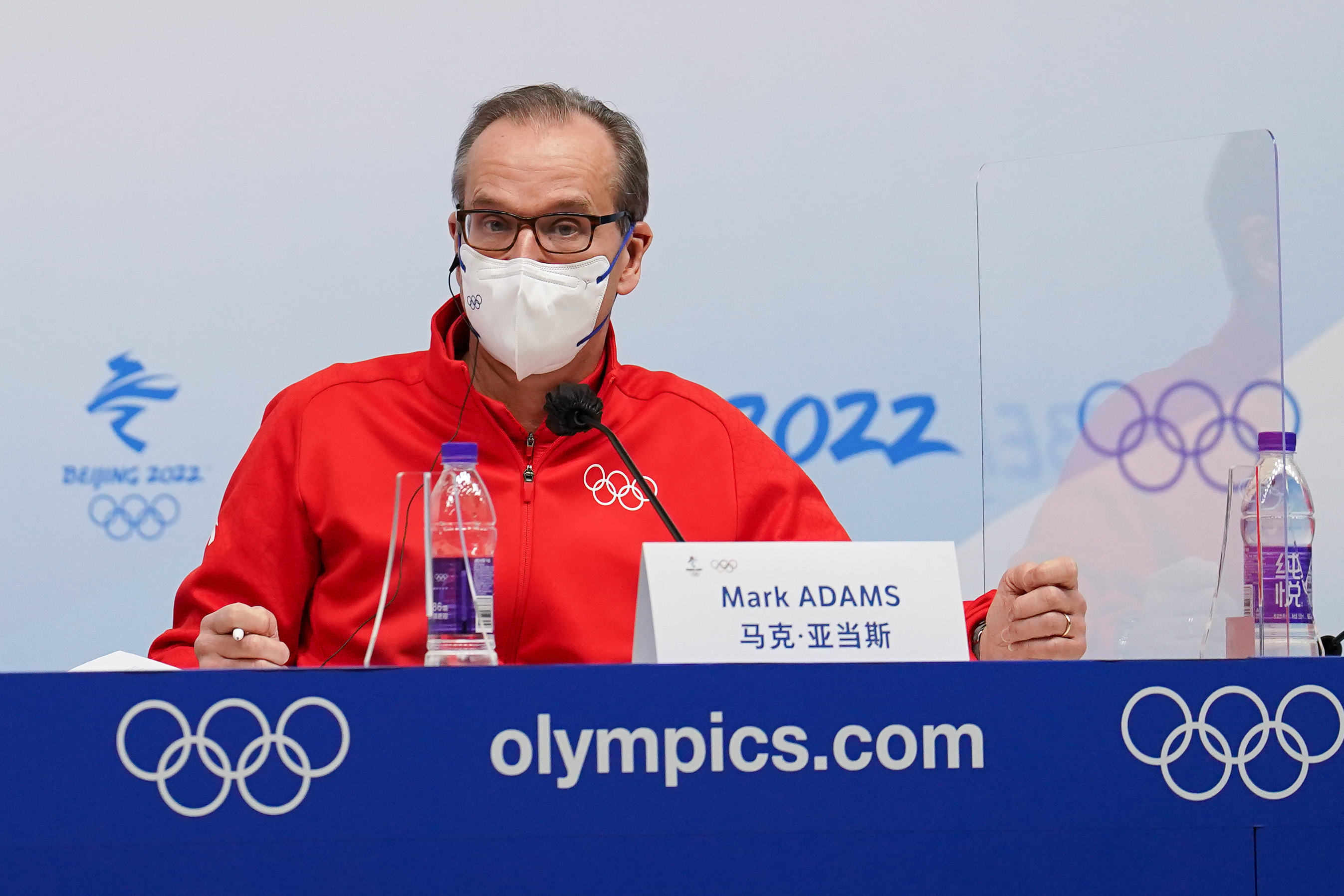 2月12日,国际奥委会新闻发言人马克·亚当斯在发布会上回答记者提问。新华社记者鞠焕宗摄